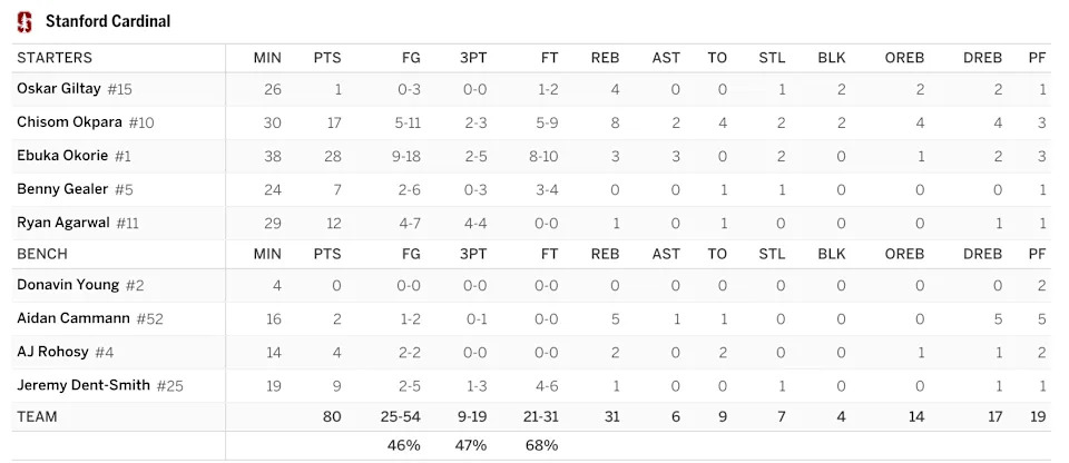 The defensive end was a bigger issue for U of L, which allowed Stanford freshman star Ebuka Okorie to pour in 28 points. When too much attention was paid to Okorie, Louisville left Stanford’s most capable shooters wide open on the perimeter. Catch and shoot specialist Ryan Agarwal finished with 12 points on 4-of-4 shooting from three.
