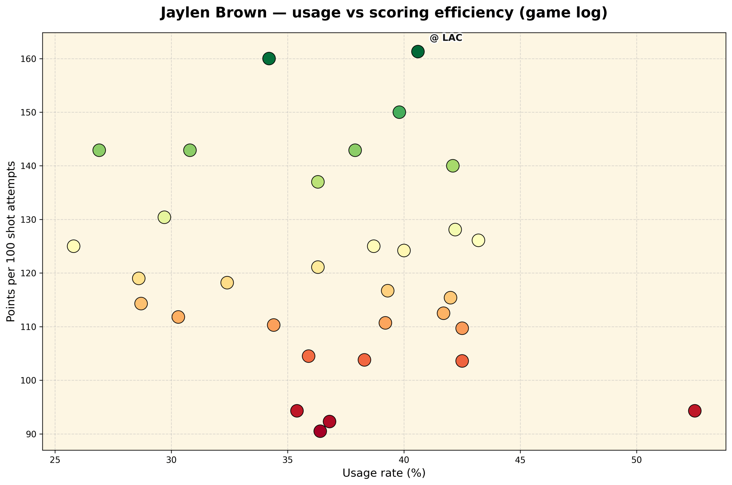 It was his most efficient performance of the year, scoring 1.61 points per shot while posting one of his highest usage rates of the season at 40%.