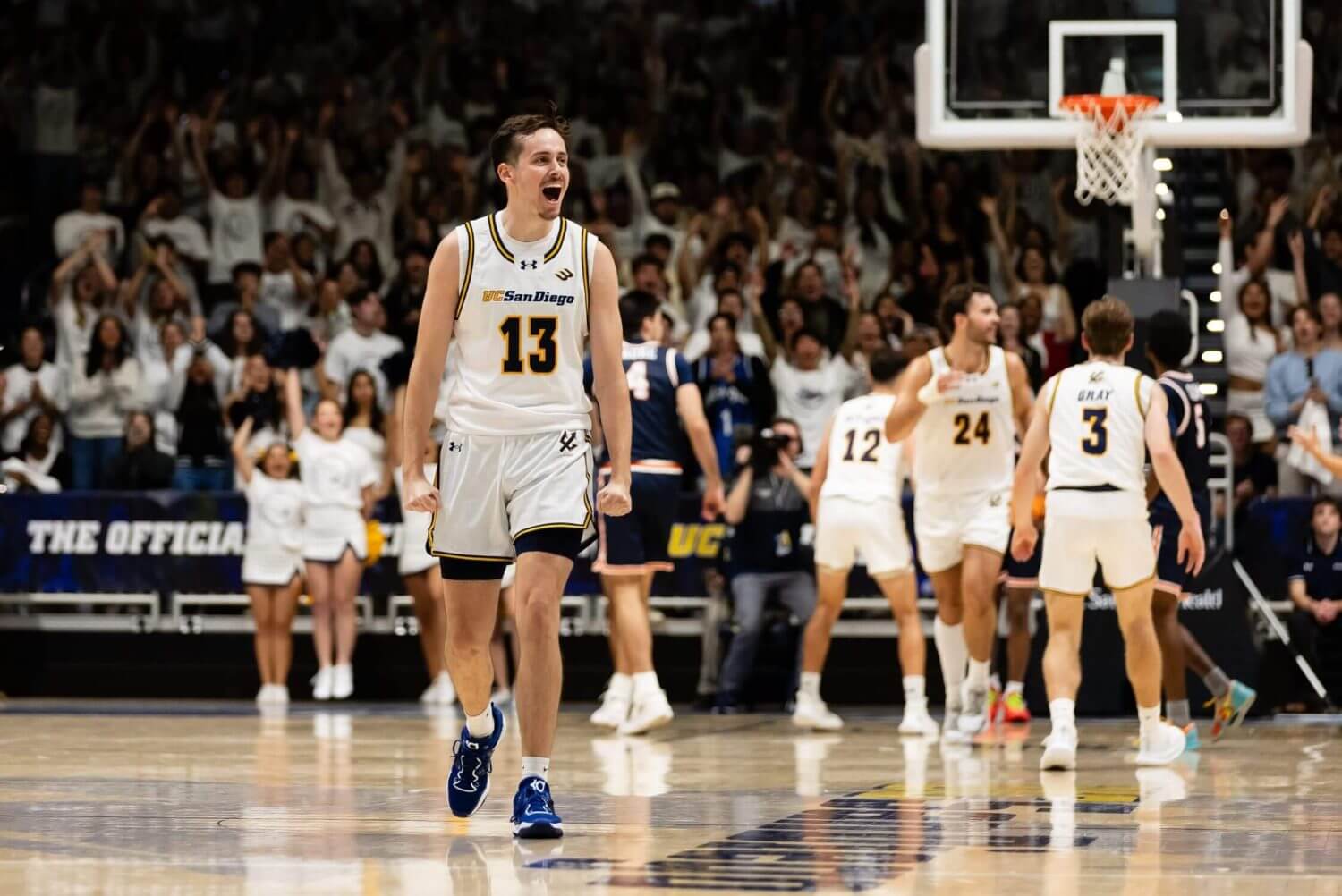 The San Diego community is starting to take notice. When Olen and Carr showed up in 2004, Carr says they were “lucky to get 50 people in the gym.” This season the attendance has more than tripled since the school’s final year in D-II, and UCSD had its second sellout in school history against UC Irvine, with students lining up four hours before tipoff. Olen recently went to a local high school game to watch one of UCSD’s recruits, and every player on the floor was doing what has become McGhie’s signature 3-point celebration: finger guns.