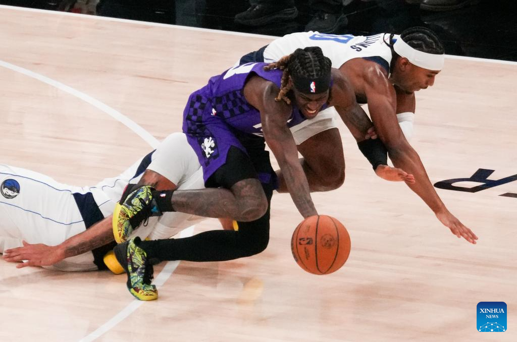 Keon Ellis (front) of Sacramento Kings fights for the ball during the 2025-2026 NBA regular season basketball match between Dallas Mavericks and Sacramento Kings in Sacramento, the United States, Jan. 6, 2026. (Photo by Sun Yuxuan/Xinhua)