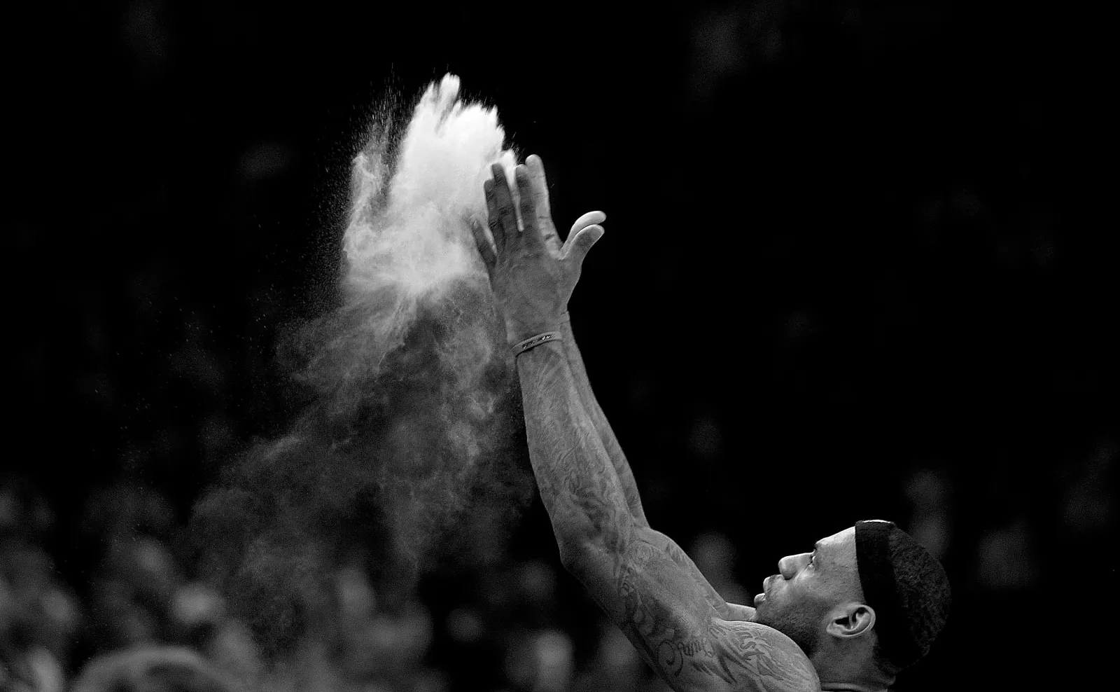 James will have a patch affixed to his upper right chest featuring a silhouette of him doing his iconic pregame chalk toss, with three colored stripes representing the trio of franchises he played for: the Cleveland Cavaliers, Miami Heat, and Los Angeles Lakers.