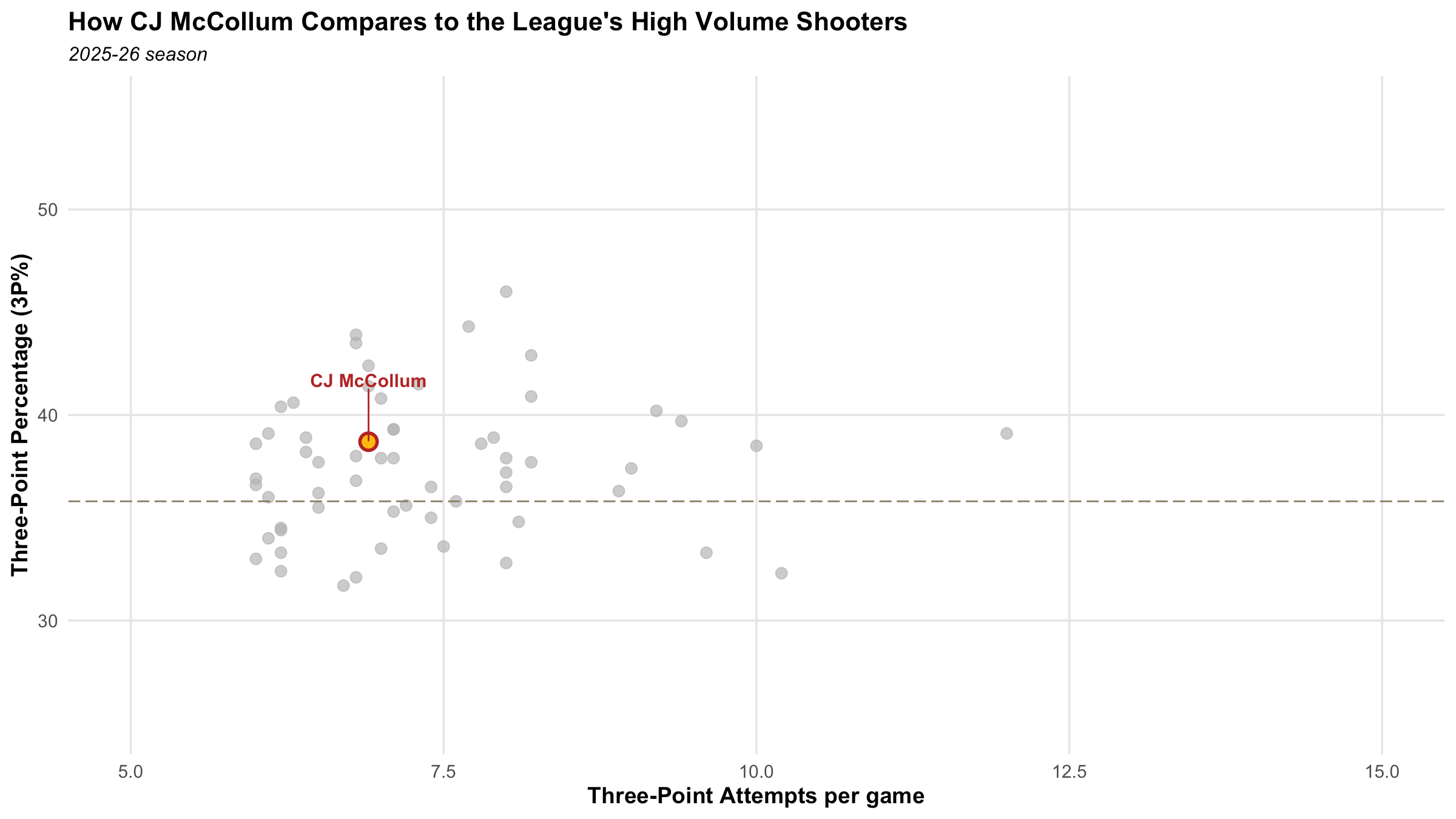 Though McCollum doesn’t put much pressure on the rim, shooting just 55.8% on 3.4 rim attempts per 75 possessions for his career, he is proficient from the mid-range, and is a high level three-point shooter both off the dribble and off the catch. This season, he ranks 21st in three-point percentage (38.6%) out of the 60 players who have attempted at least 6 threes per game.