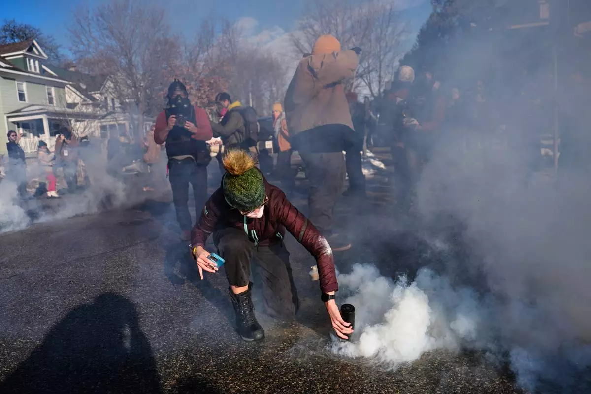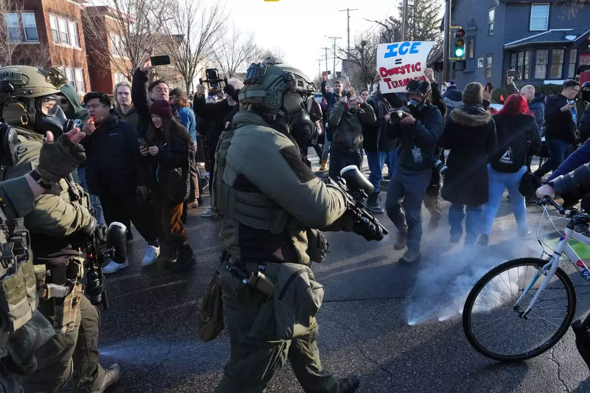 MINNEAPOLIS (AP) — Federal officers dropped tear gas and sprayed eye irritant at activists Tuesday during another day of confrontations in Minneapolis, while students miles away walked out of a suburban school to protest the Trump administration’s bold immigration sweeps.