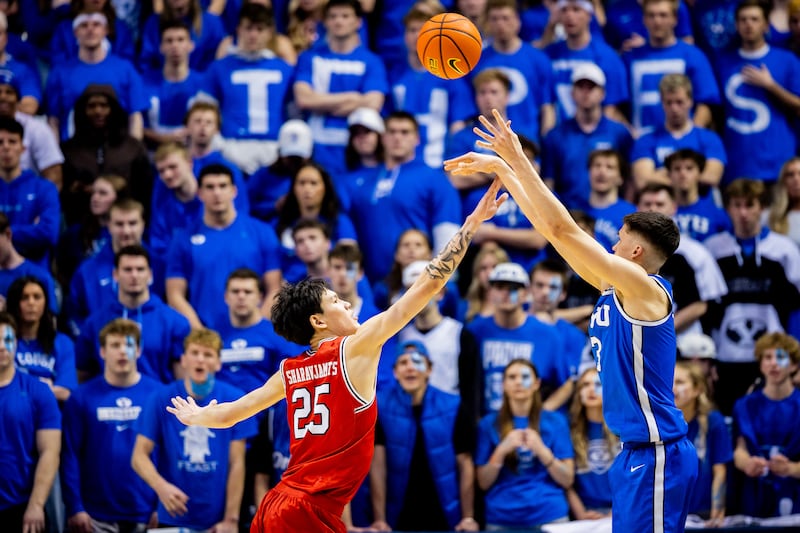 BYU guard Egor Demin (3) gets off a shot during a game against Utah at the Marriott Center in Provo on Saturday, March 8, 2025. | Tess Crowley, Deseret News