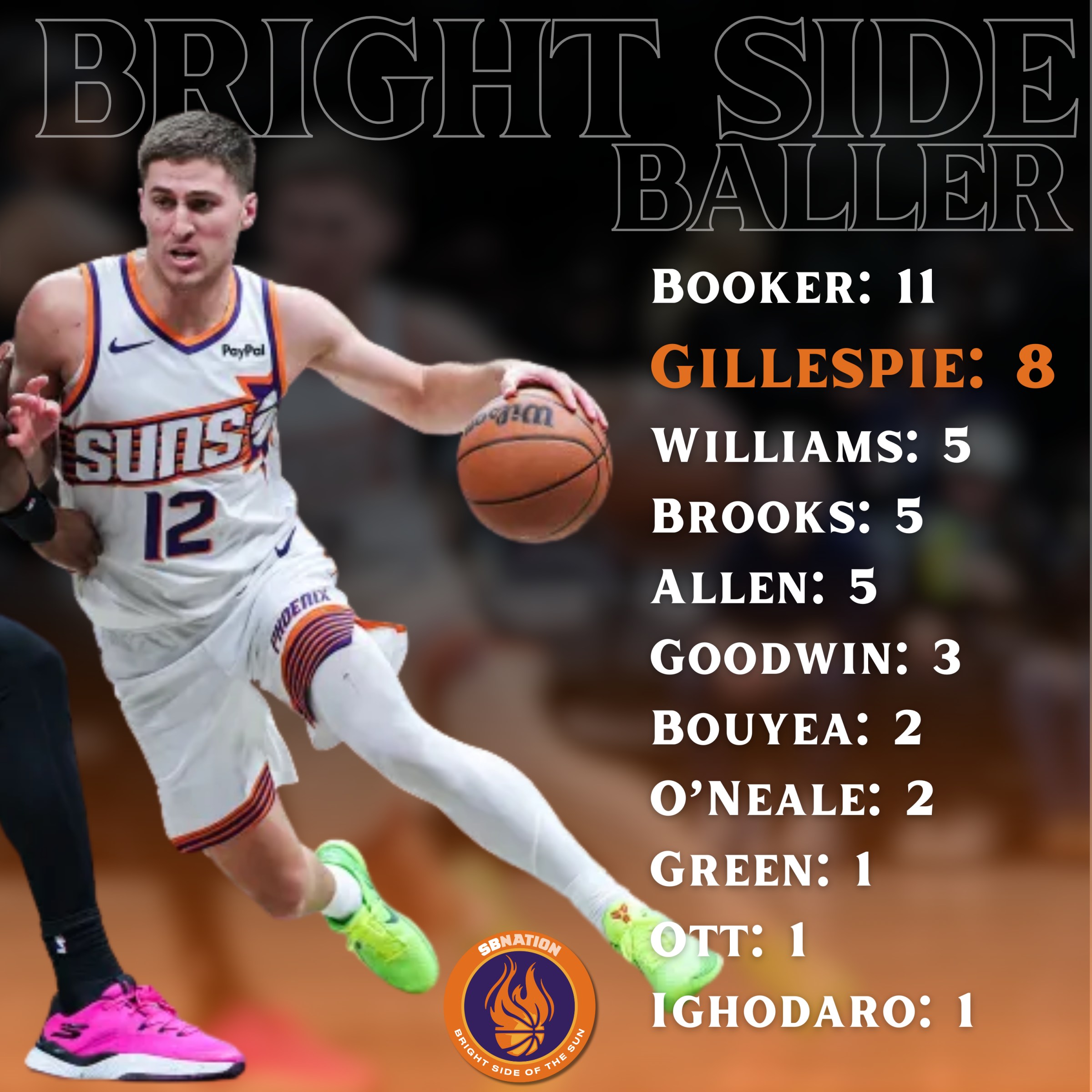 Collin is now up to 8 Bright Side Baller’s on the year after a hyper-efficient 22-point performance against the Nets. Who woulda thunk it?