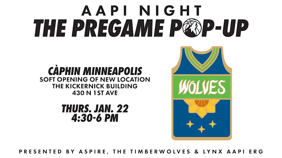 ASPIRE, the Wolves and Lynx Asian American Pacific Islander (AAPI) Employee Resource Group, is kicking things off with a FREE pregame pop-up with the first Vietnamese coffee truck/shop, Càphin. The first 150 people to purchase a drink will receive a custom-made AAPI Timberwolves themed pin designed by a local Filipina artist, Lora Hlavsa.