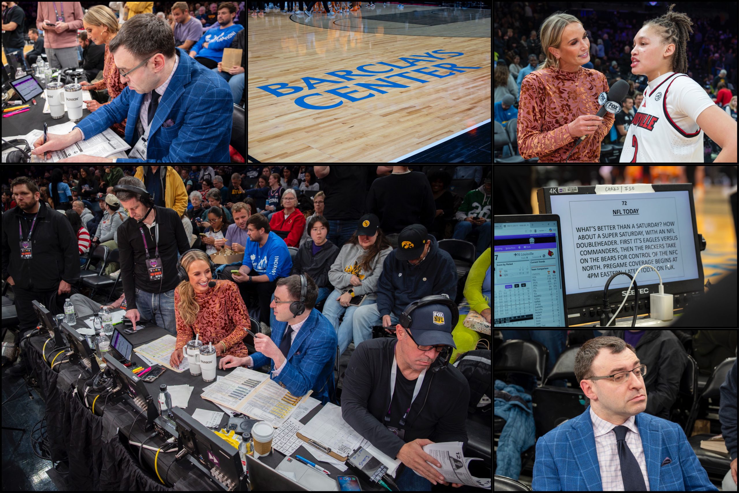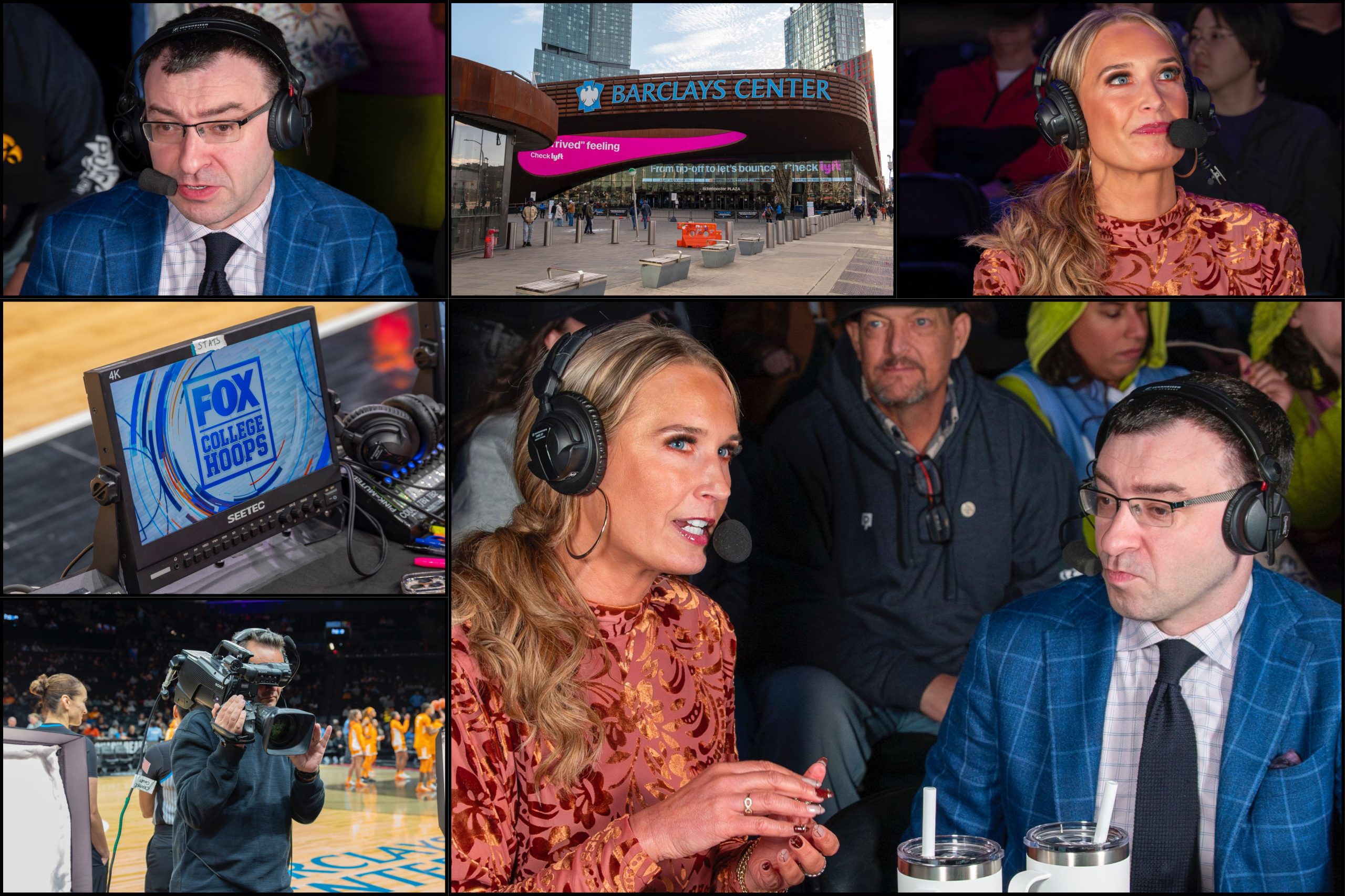 Within the corridors of Barclays Center, Fox Sports is preparing to air a women’s college basketball doubleheader featuring star players, storied programs and invested patrons. Fans cheering on the Tennessee Lady Volunteers and Louisville Cardinals are dispersed around the arena bowl, and the crowd expands as the day goes on with attendees showcasing their pride for the Iowa Hawkeyes and UConn Huskies.