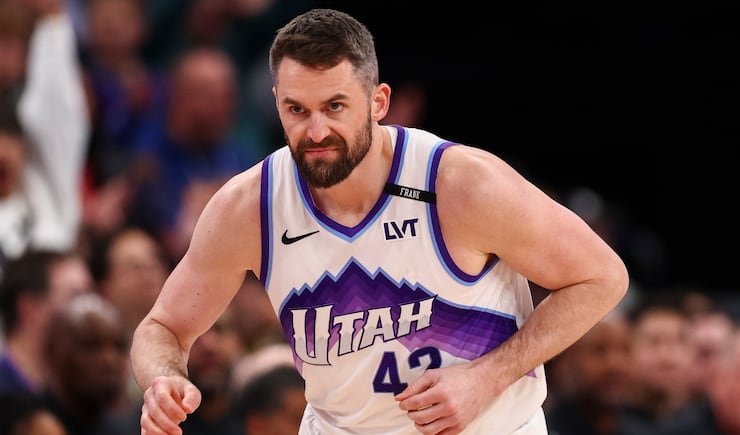 Utah Jazz forward Kevin Love (42) reacts after making a three pointer during the first half of an NBA game against the LA Clippers at the Delta Center in Salt Lake City on Tuesday, Jan. 27, 2026. | Rio Giancarlo, Deseret News