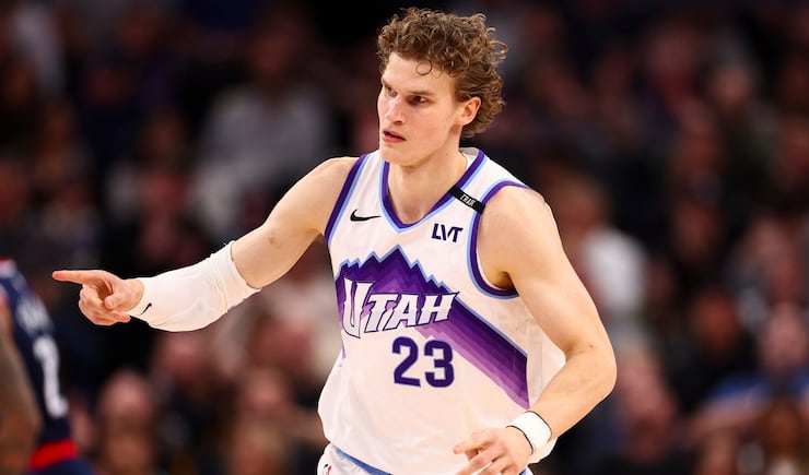 Utah Jazz forward Lauri Markkanen (23) reacts after making a 3-pointer during the first half of an NBA game against the LA Clippers at the Delta Center in Salt Lake City on Tuesday, Jan. 27, 2026. | Rio Giancarlo, Deseret News