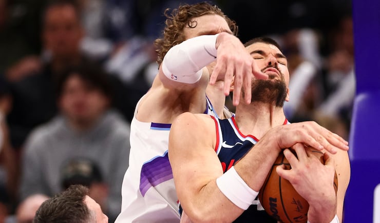 Utah Jazz forward Lauri Markkanen (23) looks to pass around LA Clippers center Ivica Zubac (40) during the second half of an NBA game at the Delta Center in Salt Lake City on Tuesday, Jan. 27, 2026. | Rio Giancarlo, Deseret News