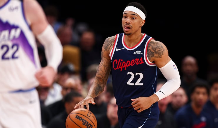 LA Clippers guard Jordan Miller (22) moves the ball up court during the first half of an NBA game against the Utah Jazz at the Delta Center in Salt Lake City on Tuesday, Jan. 27, 2026. | Rio Giancarlo, Deseret News