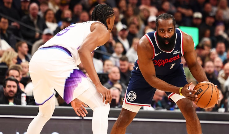 LA Clippers guard James Harden (1) looks on during the second half of an NBA game against the Utah Jazz at the Delta Center in Salt Lake City on Tuesday, Jan. 27, 2026. | Rio Giancarlo, Deseret News