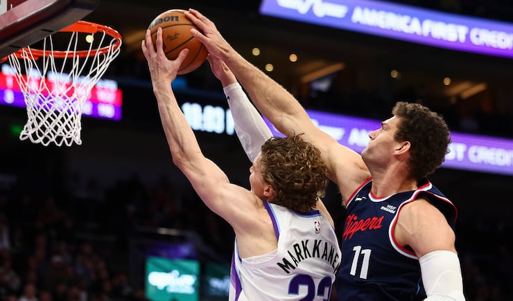 LA Clippers center Brook Lopez (11) blocks a lay up attempt by Utah Jazz forward Lauri Markkanen (23) during the second half of an NBA game at the Delta Center in Salt Lake City on Tuesday, Jan. 27, 2026. | Rio Giancarlo, Deseret News