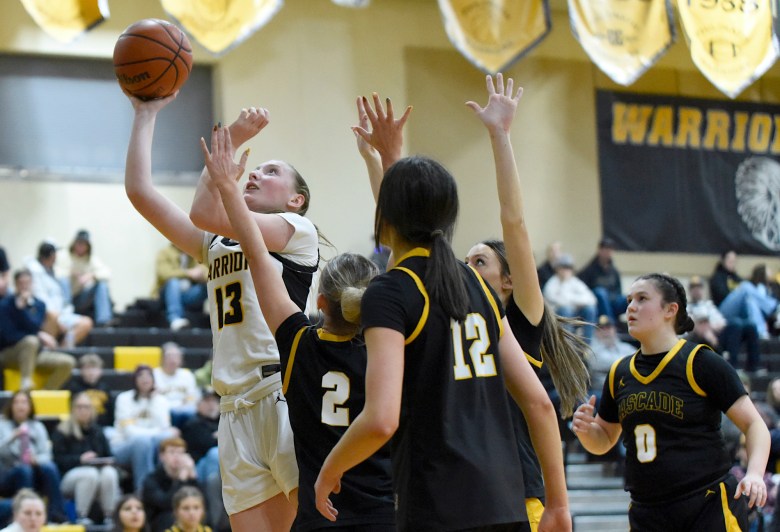 The game saw several lead changes but remained close throughout. Neither team led by more than three points in the first half and the Cougars had a 26-25 advantage at the break. In the third, Cascade had five-point leads on a couple of occasions but the Warriors finished the quarter strong and tied the score, 39-39, with 3-pointers by sophomore Reagan Nuño and senior Isabelle Muir.