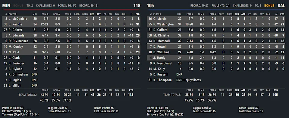 Julius Randle was playing in his hometown of Dallas with his mother in attendance. Perhaps her presence gave Randle the motivation to carry Minnesota on the offensive end. He chipped in 10 of his game-high 31 points in the opening quarter.