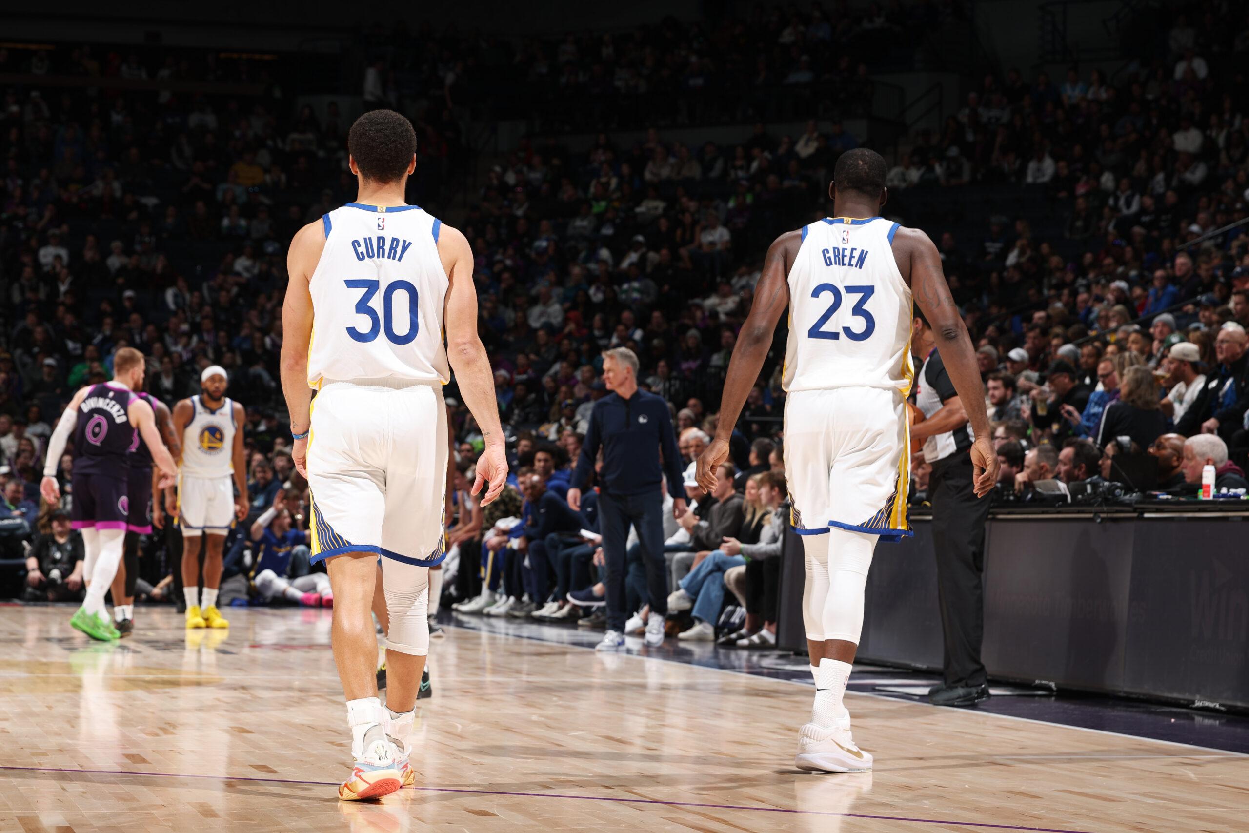 Stephen Curry and Draymond Green during the game against the Timberwolves on January 25