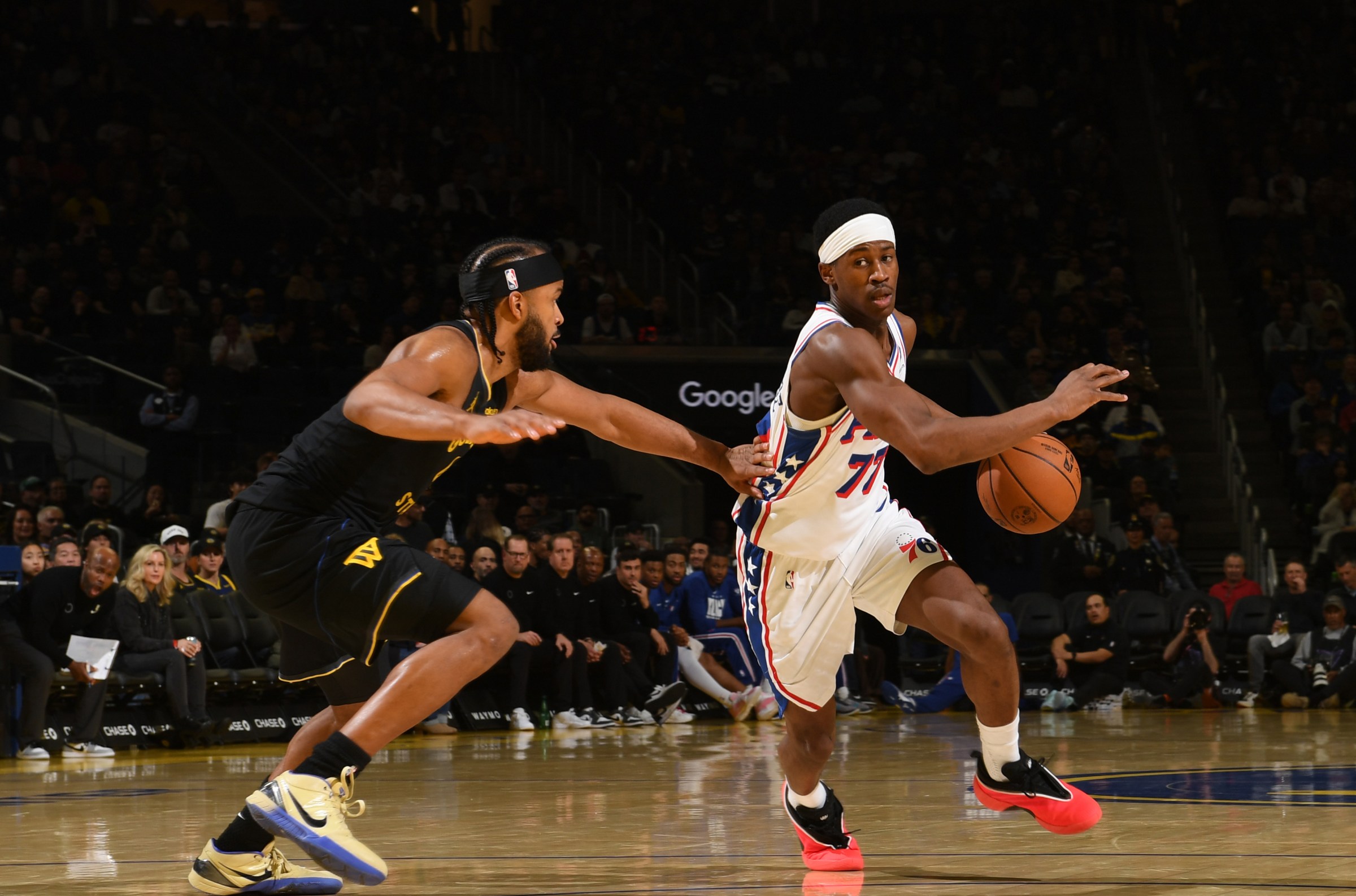 They were without Joel Embiid (injury management) and Paul George (suspended). The Warriors were without the services of Stephen Curry (knee), Jonathan Kuminga (knee) and Jimmy Butler (ACL).