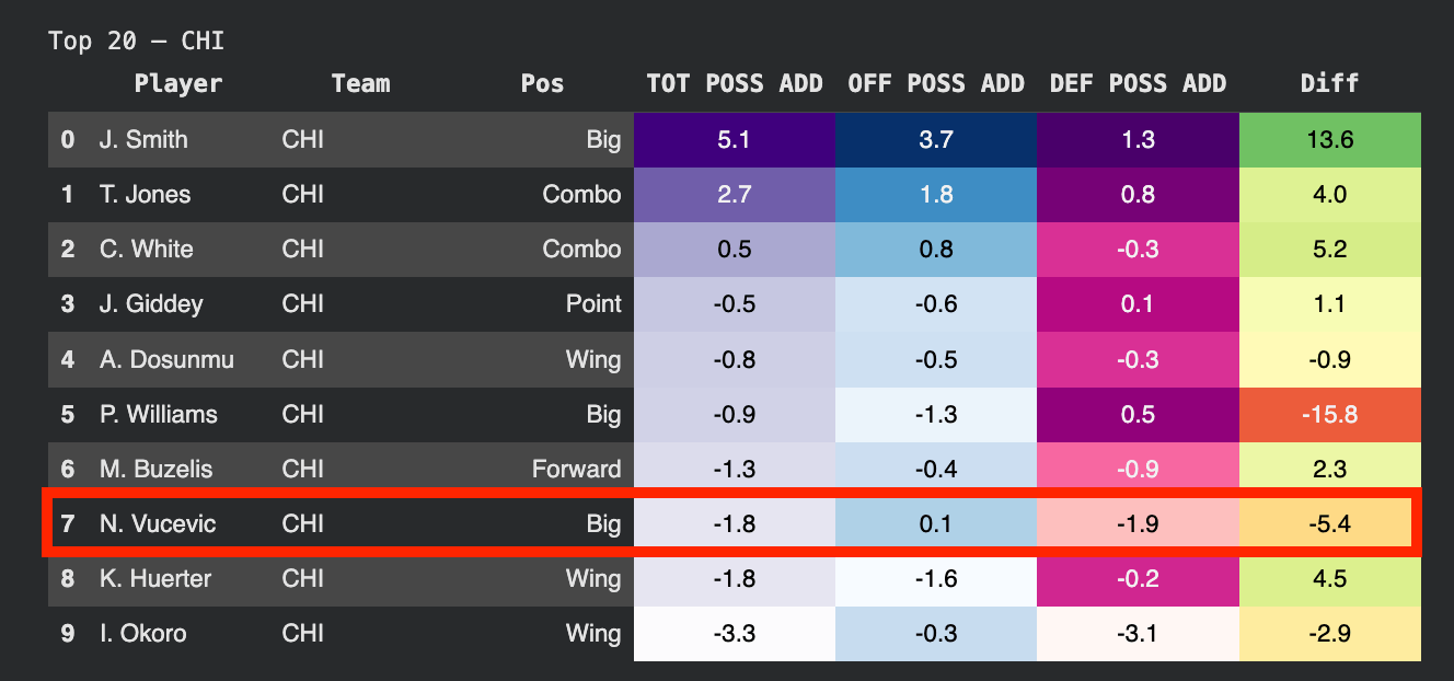 However, to become one of the best teams at winning the possession battle, you need soldiers who generate those extra attempts. Therefore, with some coding, a lot of brain juice, and plenty of coffee, I was able to come up with a metric that evaluates the volume of extra possessions gained (or saved!) when a player is on the court.