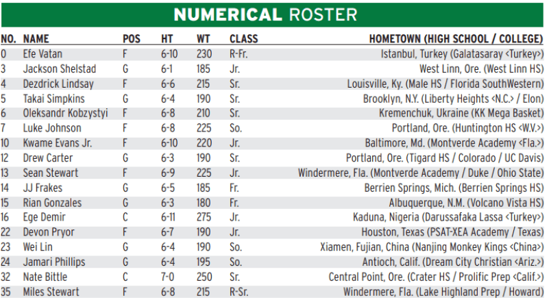 Oregon’s results and roster