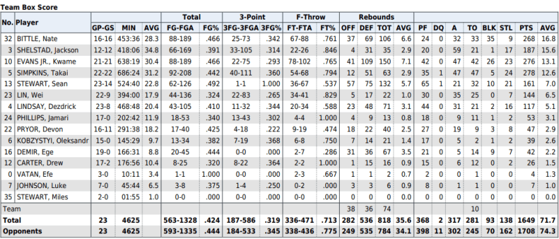 Oregon has an effective field goal percentage of 49.4 percent on the year (No. 256). The Ducks are shooting 31.9 percent from three (No. 276) and 50.7 percent on 2s (No. 217).