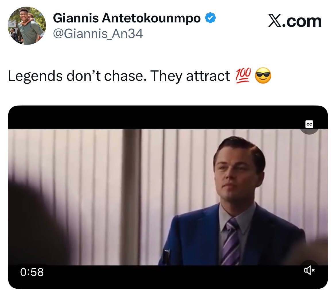 This means that Giannis, who has a great deal of influence over his basketball situation and demanding a trade, was benefitting financially from the speculation around his status. Speculation that included Giannis himself giving contrasting statements like “I’m an employee” one day and “I want to be here forever” the next. Plus, you had Shams constantly reporting that the Bucks were aggressively shopping a Giannis trade at least a few weeks.