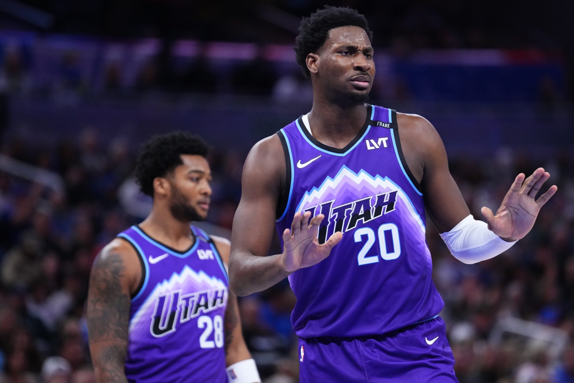 Jaren Jackson Jr. of the Utah Jazz looks on against the Orlando Magic during the first half at Kia Center on February 07, 2026 in Orlando, Florida. (Rich Storry/Getty Images)
