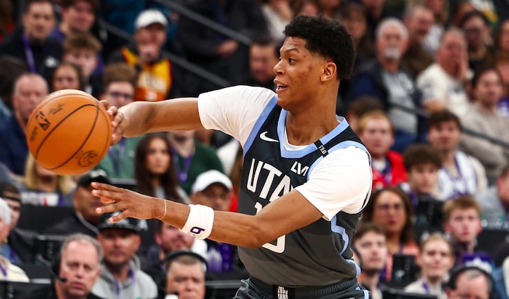 Utah Jazz guard Ace Bailey (19) passes the ball during the first half of an NBA game against the Portland Trail Blazers at the Delta Center in Salt Lake City on Thursday, Feb. 12, 2026. | Rio Giancarlo, Deseret News