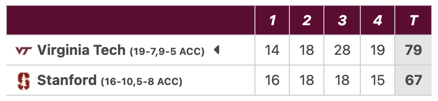 Box Score: Virginia Tech 79, Stanford 67