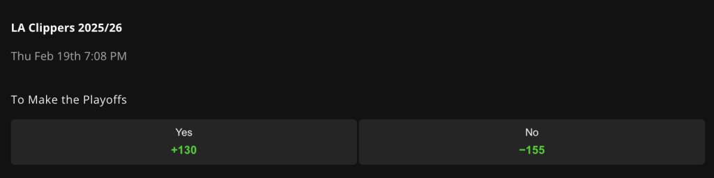 DraftKings Sportsbook lists LAC at +130 to reach the postseason and -155 to miss it.