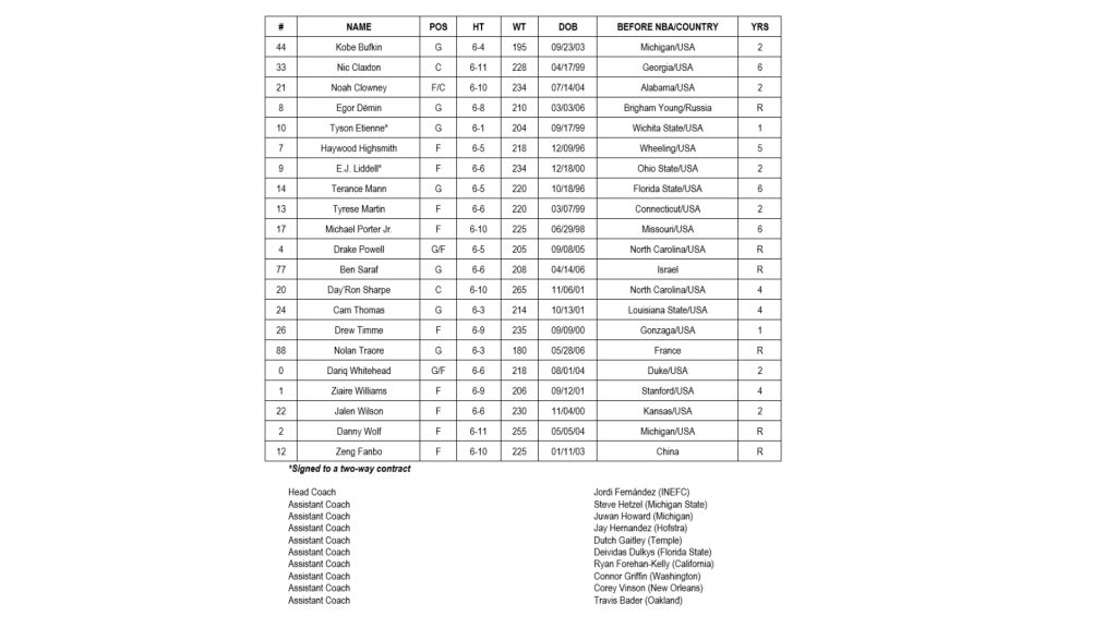 Brooklyn’s full training camp roster is as follows: