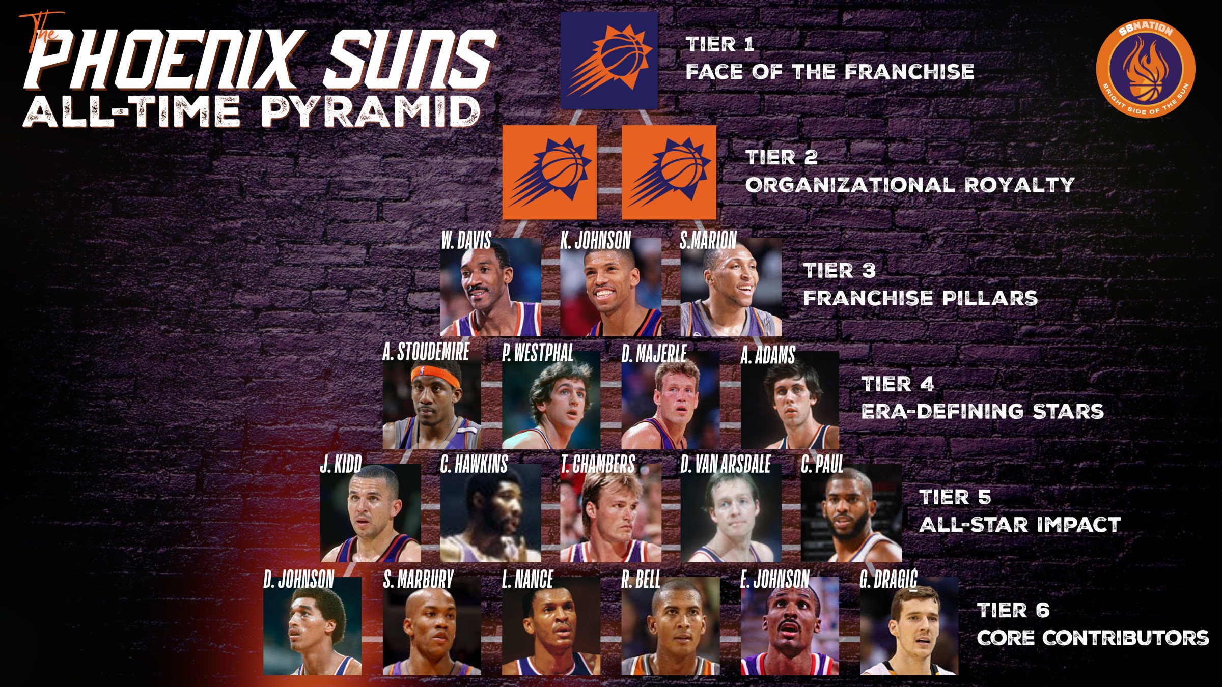The journey keeps rolling as we build out the Phoenix Suns All-time Pyramid, a thought exercise that tries to give shape to a long, complicated, and deeply personal history. So many players. So few spots.
