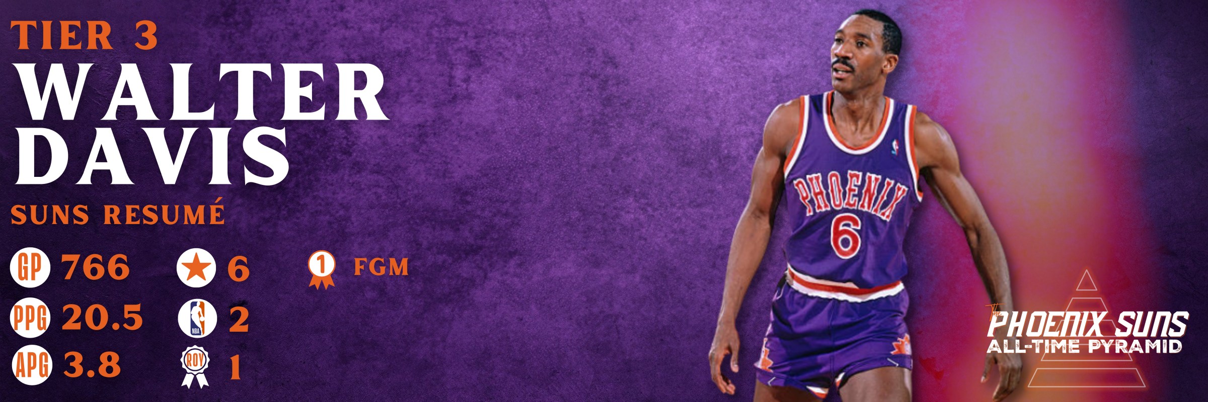 If you are building a Phoenix Suns All-Time Pyramid, Walter Davis has to be on it. Where, however, is highly subjective.