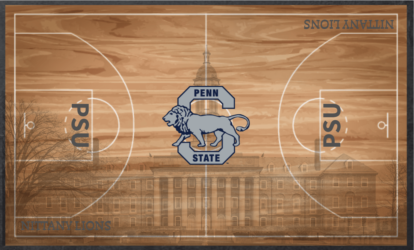 The Big Twelve conference recently unveiled plans to host its men’s and women’s basketball tournaments on an advanced glass court. The floor will be equipped with embedded LED technology, enabling dynamic data displays, digital advertising, and interactive fan experiences during timeouts. With March Madness around the corner, we came up with a few Penn State floor designs that would light up the Bryce Jordan Center with this technology.