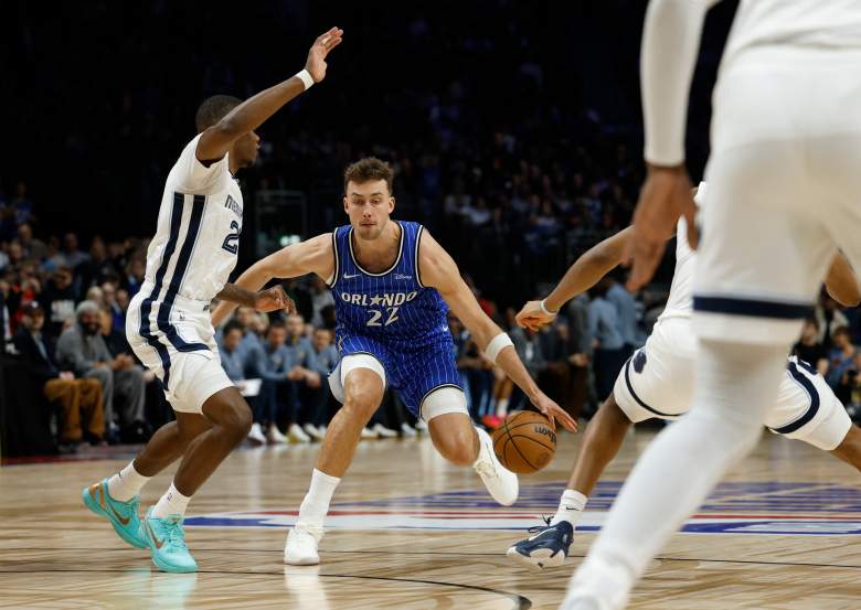 BERLIN, GERMANY – JANUARY 15: Franz Wagner #22 of the Orlando Magic dribbles during the third quarter of the NBA Match between Memphis Grizzlies and Orlando Magic at Uber Arena on January 15, 2026 in Berlin, Germany. NOTE TO USER: User expressly acknowledges and agrees that, by downloading and or using this photograph, user is consenting to the terms and conditions of the Getty Images License Agreement. (Photo by Maja Hitij/Getty Images)