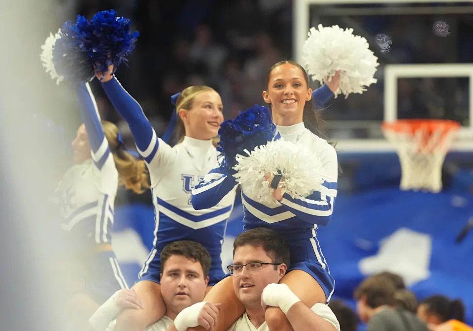 Kentucky’s cheerleaders entertain the crowd against Tennessee at Rupp Arena Saturday night.