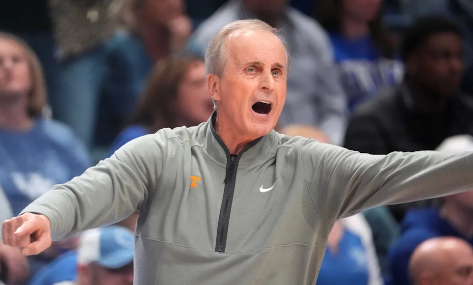 Tennessee’s head coach Rick Barnes yells at his team against Tennessee at Rupp Arena Saturday night.