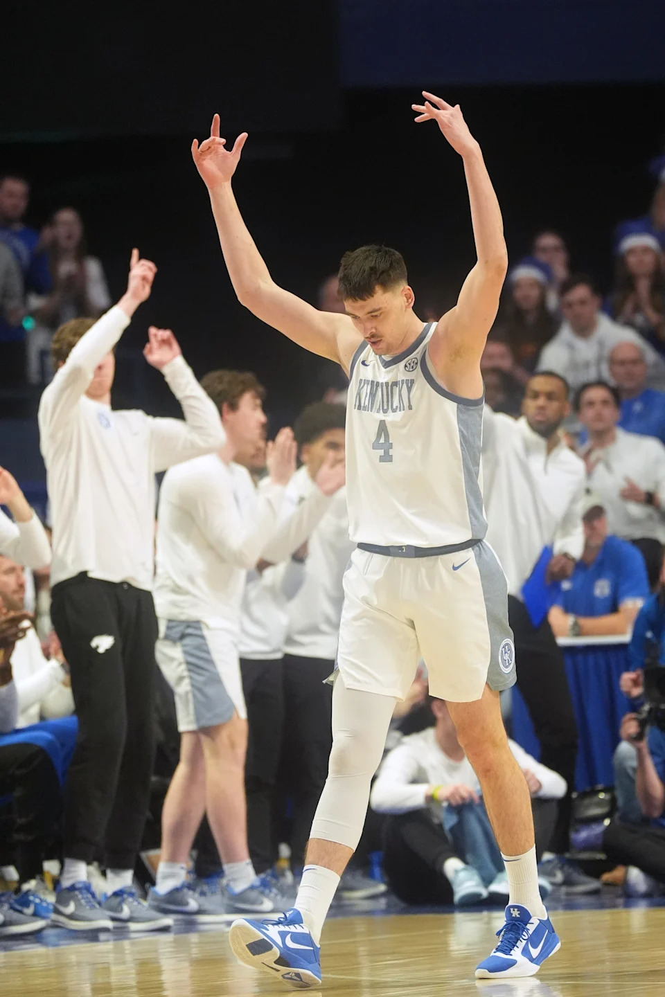 Kentucky’s forward Andrija Jelavić (4) celebrates a play against Tennessee at Rupp Arena Saturday night.