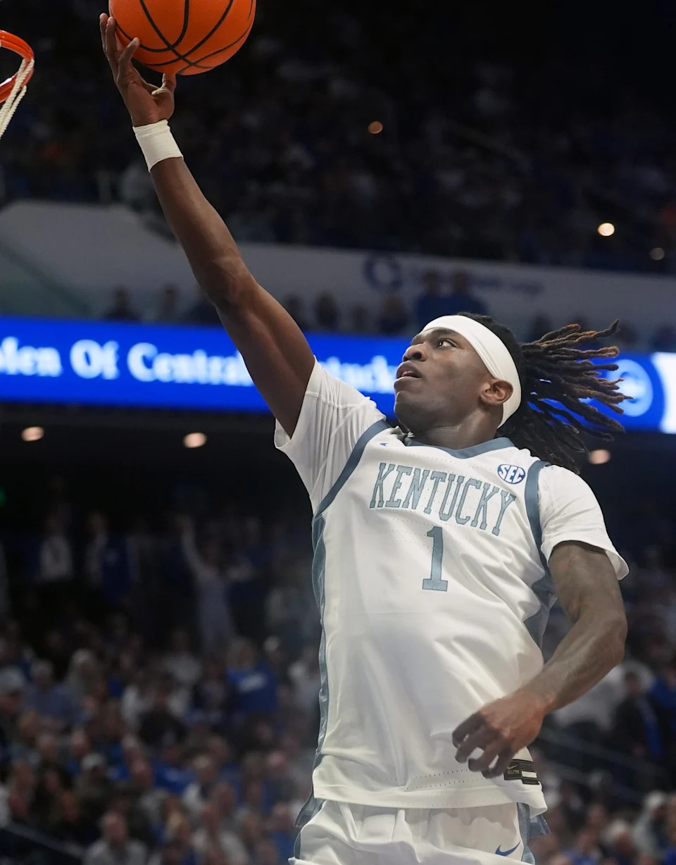 Kentucky’s guard Denzel Aberdeen (1) makes the basket against turnover at Rupp Arena Saturday night.