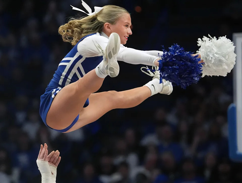 Kentucky cheerleaders entertain the crowd against Oklahoma Wednesday night at Rupp Arena.