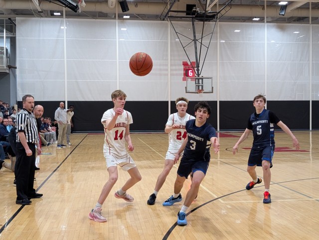 Marblehead’s hail mary baseball pass from the baseline was intercepted at the top of the far 3-point arc, sealing a 59-55 win for Swampscott to complete their season sweep.