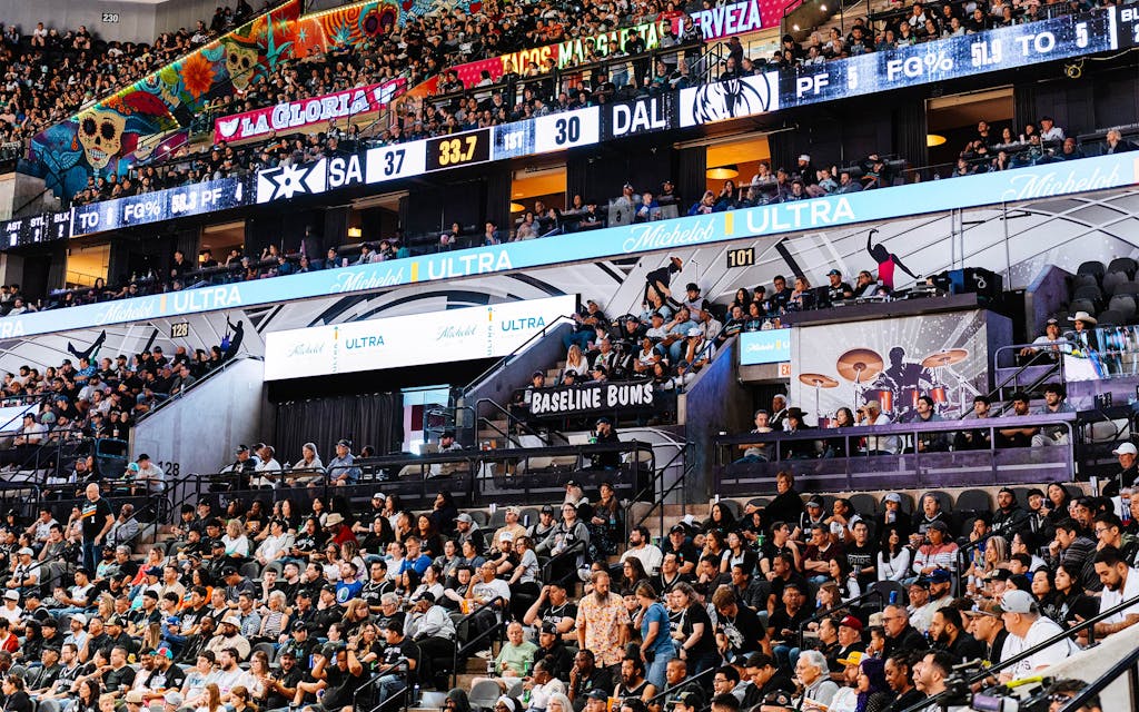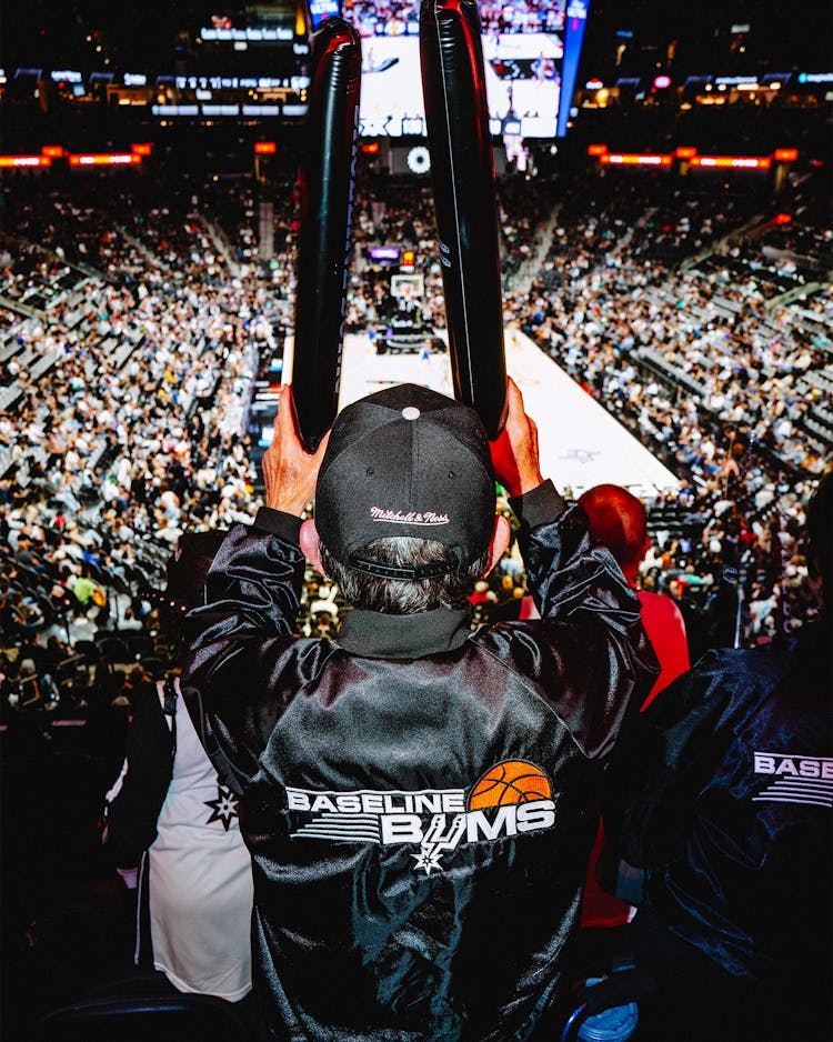 The Jackals arrived with some fanfare. In mid-September, more than five hundred Spurs fans turned out for tryouts for the group at Freeman Expo Hall. Like jesters dancing for their king, the hopefuls hollered and chanted as Wemby, on a Spurs-branded throne, smiled and took notes. He selected 75 men and women for the group; in exchange for a steeply discounted $999 season pass, each Jackal pledged to attend at least 75 percent of the season’s home games and be very, very loud. Because of both their volume and their proximity to Wemby, the Jackals have drawn attention in their virgin season—they are another shiny amenity of the Wembaissance. But some longtime fans wondered on social media: What about the Bums?