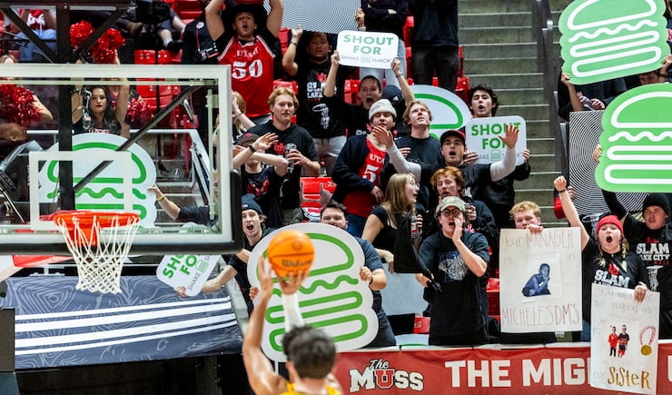 Utah students cheer for an Iowa State player to miss their foul shots so fans can win free food from Shake Shack during an NCAA basketball game held at the Huntsman Center in Salt Lake City on Tuesday, Feb. 24, 2026. | Isaac Hale, Deseret News