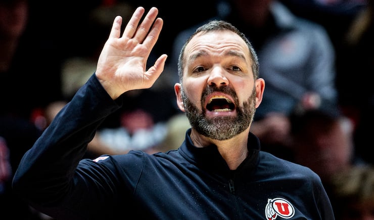 Utah head coach Alex Jensen calls out to his players during an NCAA basketball game against Iowa State held at the Huntsman Center in Salt Lake City on Tuesday, Feb. 24, 2026. | Isaac Hale, Deseret News