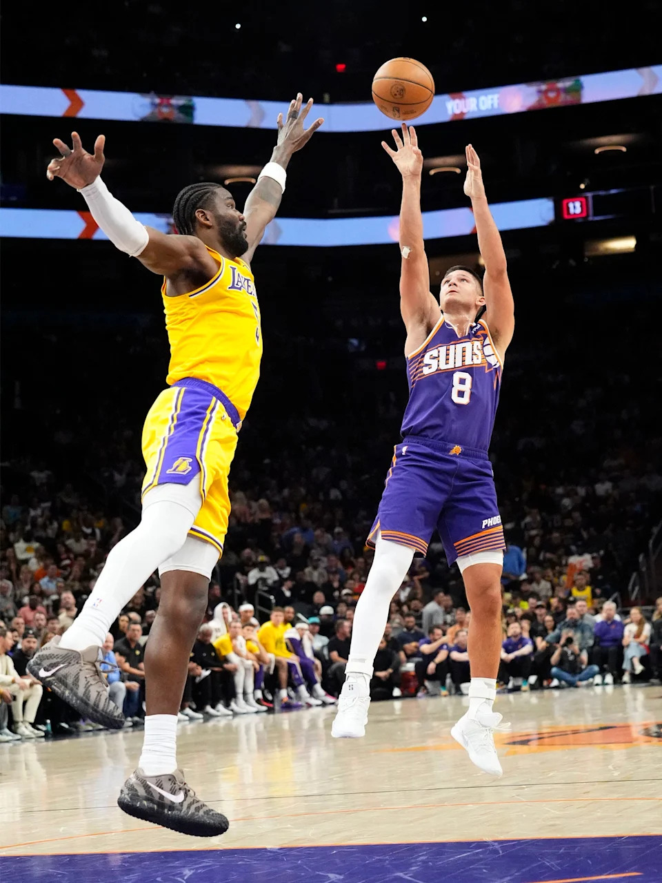 Suns coach Jordan Ott addressed the Anthony situation in his pregame news conference Feb. 26 before Phoenix stunned the Los Angeles Lakers, 113-110, at Mortgage Matchup Center. Royce O’Neale hit a game-winning 3 with 1.7 seconds left in the game.