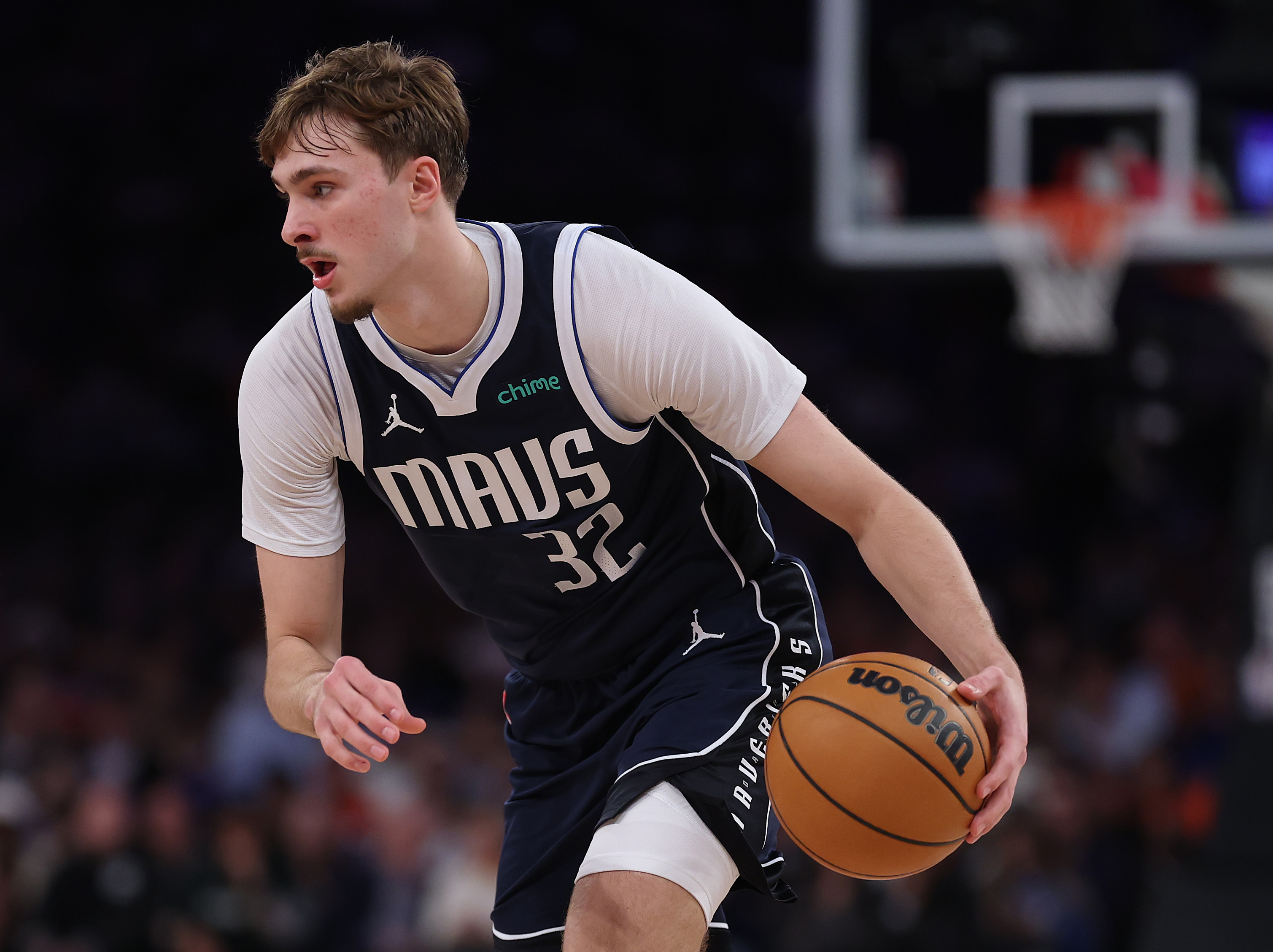 GettyNEW YORK, NEW YORK – JANUARY 19: Cooper Flagg #32 of the Dallas Mavericks dribbles the ball against the New York Knicks during their game at Madison Square Garden on January 19, 2026 in New York City.  (Photo by Al Bello/Getty Images)