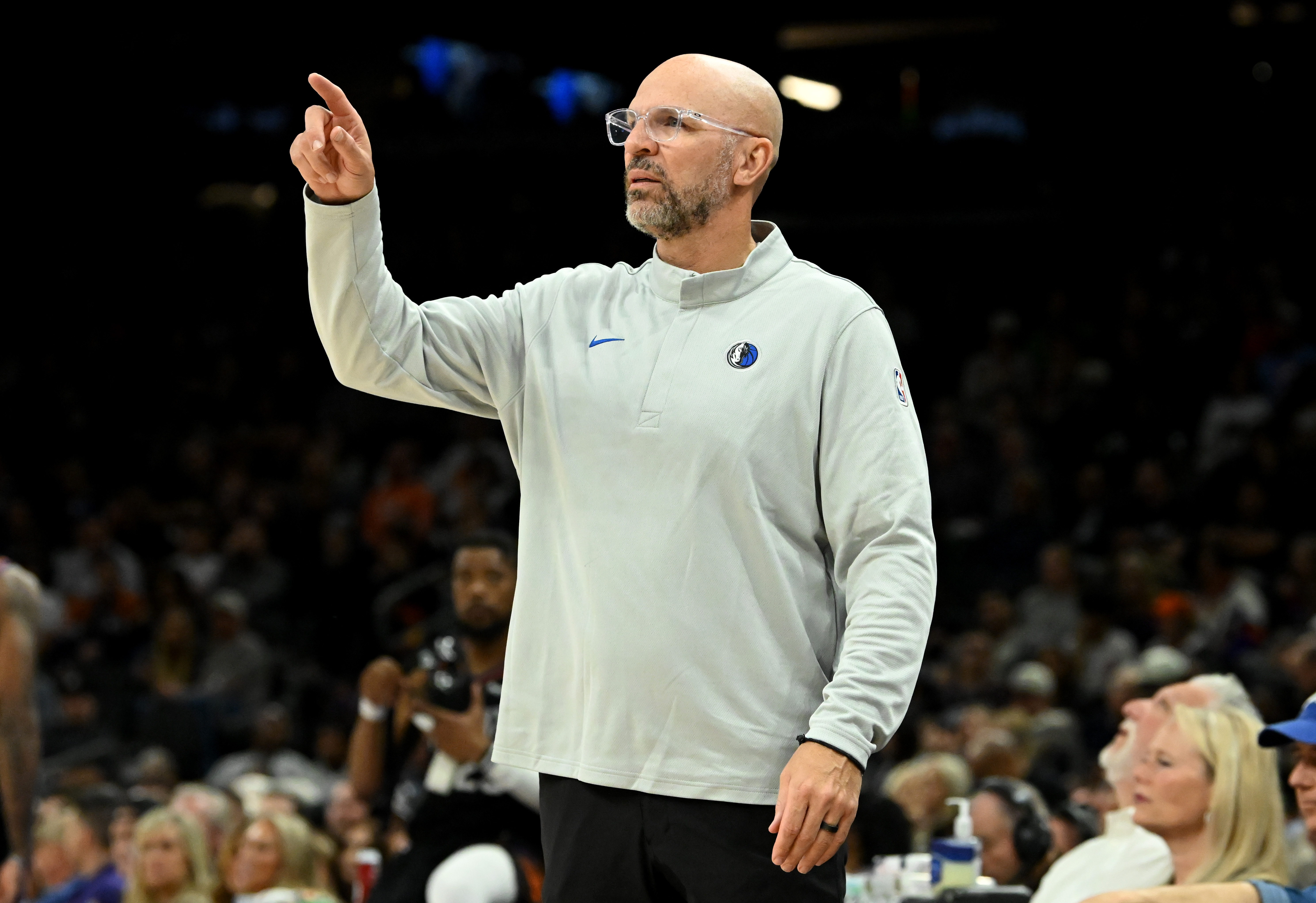 DALLAS, TEXAS – JANUARY 28: Head coach Jason Kidd of the Dallas Mavericks watches play during the first quarter of the game against the Minnesota Timberwolves at American Airlines Center on January 28, 2026 in Dallas, Texas. NOTE TO USER: User expressly acknowledges and agrees that, by downloading and or using this photograph, user is consenting to the terms and conditions of the Getty Images License Agreement. (Photo by Sam Hodde/Getty Images)