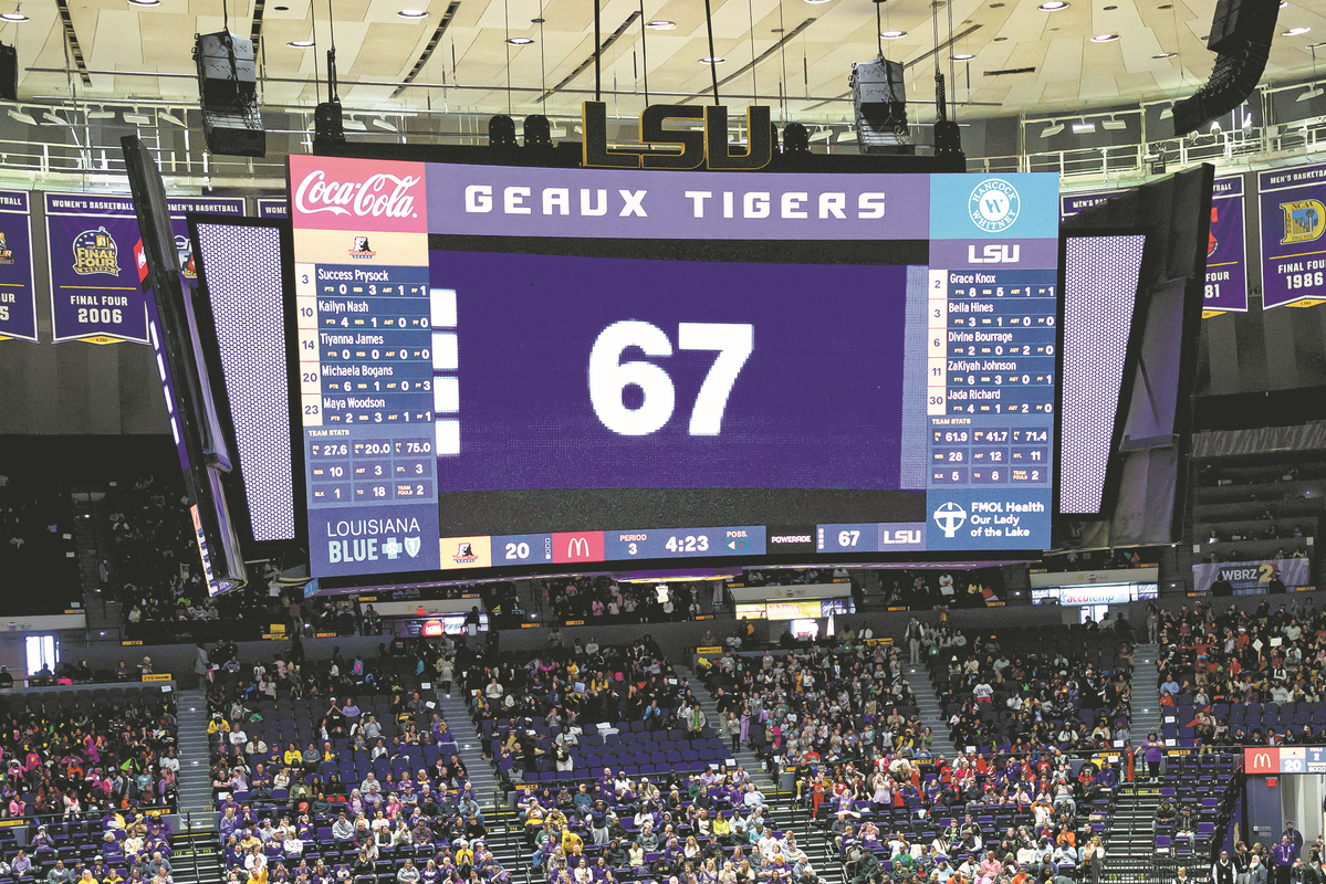 Louisiana State University’s women’s basketball coach Kim Mulkey did the hand gesture while on the big screen during a win over Morgan State, drawing an eruption from the home crowd and laughter from her players. Mulkey said her grandson got upset with her after a game because LSU skipped 67 points and went straight to 68.