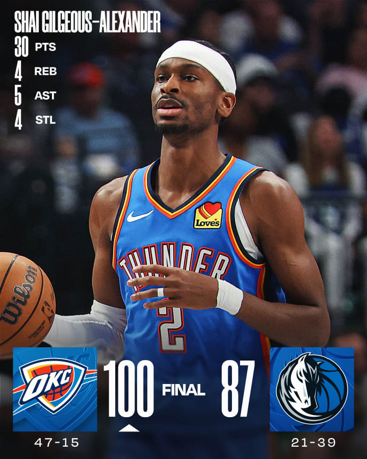 We technically do have our first clinch of the season already. The Oklahoma City Thunder’s 100-87 victory over the Dallas Mavericks officially locked the Thunder into the Western Conference’s top 10, meaning that the worst they can do is end up in the Play-In Tournament. The Thunder haven’t officially clinched a playoff spot yet, they still need (at most) nine wins to lock themselves into the Western Conference’s top 6.