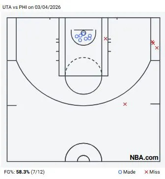 I’m not sure what else he could have done in this one (other than just shoot with more efficiency, but more on that in a second). From the jump, the Jazz went with the defensive strategy of just sticking a double or even triple team on Maxey at all times. Not a bad idea, considering he was really the only shooting threat on paper from the Sixers’ lineup tonight. Even with all of that attention, though, Maxey managed to make it work. He started using his speed and footwork to maneuver through the defense before they could trap him, getting into the paint to find opportunities there and sometimes earning a trip to the line in the process.