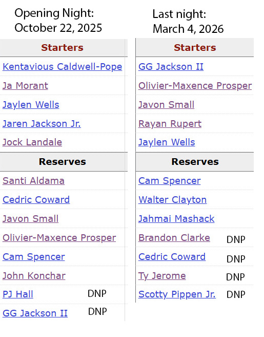 The team the Grizzlies are fielding in March 2026 is vastly different from the one that started the season in October 2025.